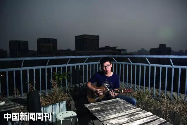 706的前住客邓可在天台上弹吉他。摄影|本刊记者 董洁旭