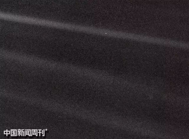 这张著名的照片被称作“暗淡的蓝点”(Pale Blue Dot),1990年2月14日由“旅行者1号”拍摄。地球在这张从40亿英里外(64亿公里外)拍摄的照片中,只是在粒状照片里的一个渺小“暗淡蓝点”。照片使用了一台窄角度的相机于黄道之上32 °拍摄,并使用了蓝色、绿色和紫色的滤光镜。这张照片也使卡尔·萨根得到灵感,写成了《Pale Blue Dot》。