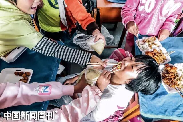 褚智坤在校门口订的午饭不小心弄撒了,正当她失落之时,孩子们都纷纷围过来让她吃自己的饭。