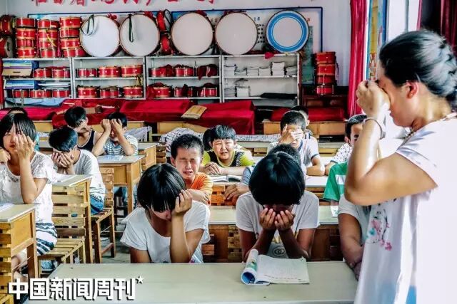 六年级毕业班在跟老师告别,孩子们悄悄准备了一首歌《每当我走过老师窗前》,一起唱给他们的班主任杨老师听。唱完,老师和孩子们哭成一片,邵广红也是哭着拍下这张照片的。